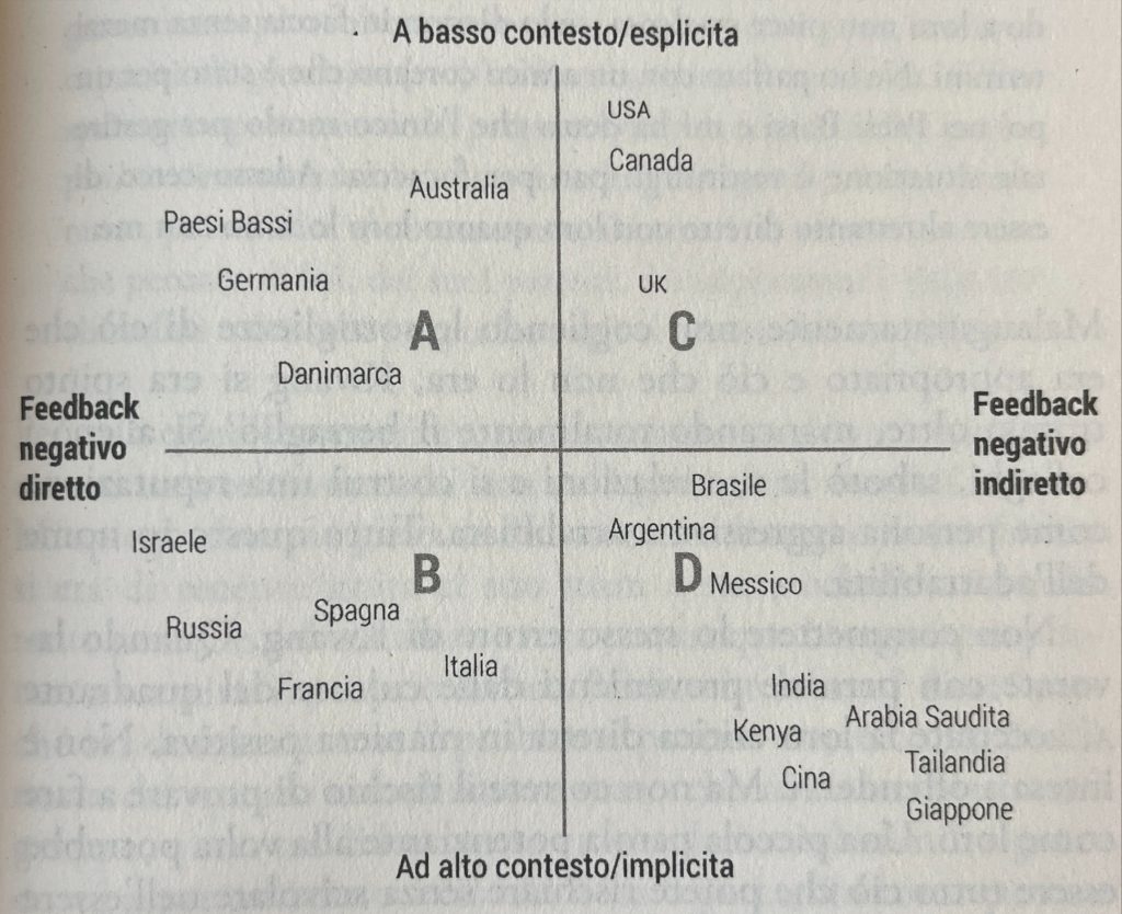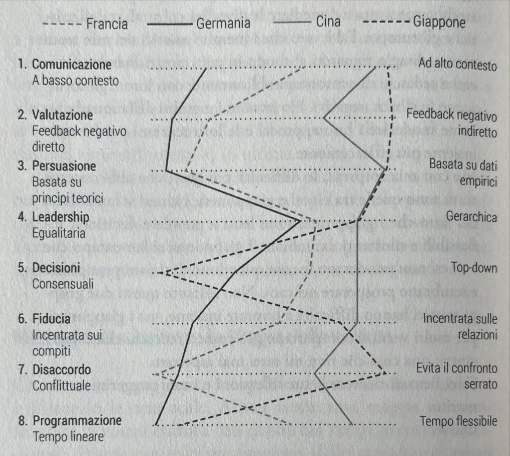 Questo mondo ci viene illustrato da Erin Meyer in modo semplice e concreto, attraverso degli esempi di vita vissuta che in alcuni casi possono apparire troppo assurdi per essere veri. E invece è proprio la realtà che spesso supera la fantasia, ed è proprio vero che scambiando due chiacchiere con un cinese o con un americano può capitare di tornare a casa con due sensazioni completamente diverse.