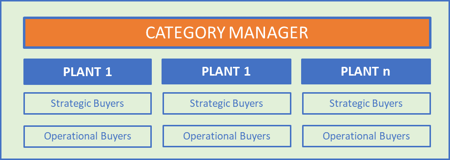 Se un’azienda possiede più di uno stabilimento produttivo, quindi più di un’organizzazione acquisti locale, oltre al team locale, che è focalizzato solo sul proprio sito, esiste la figura del Category Manager, il cui compito è creare sinergie tra gli stabilimenti o le diverse linee di prodotto.